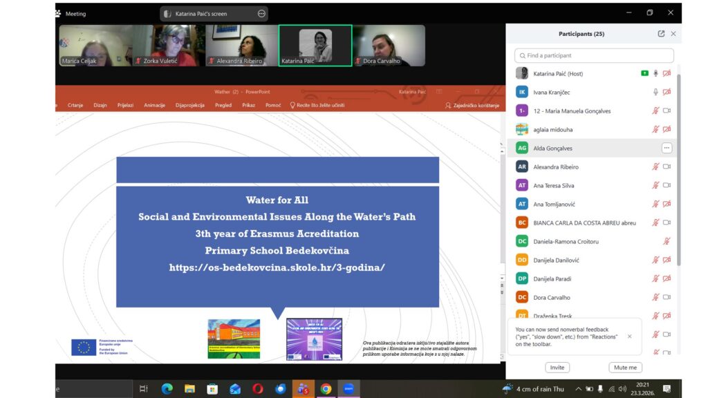 Učenici OŠ Bedekovčina (Hrvatska) i Collège Notre Dame Marvejols (Francuska) sudjelovali su u prvoj virtualnoj aktivnosti Erasmus+ projekta Water for All putem Zooma i eTwinning platforme.