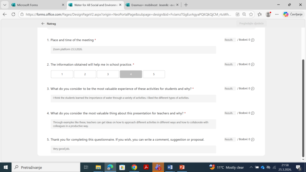 2. Virtualna aktivnost u sklopu Erasmus+ projekta „Water for All – Social and Environmental Issues Along the Water’s Path”