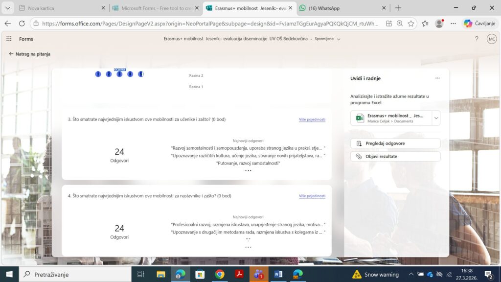 U srijedu, 18. ožujka 2026. godine, s početkom rada u 18:15 sati, na Učiteljskom vijeću Osnovne škole Bedekovčina održana je diseminacija Erasmus+ aktivnosti u sklopu Erasmus+ akreditacije, treća godina.