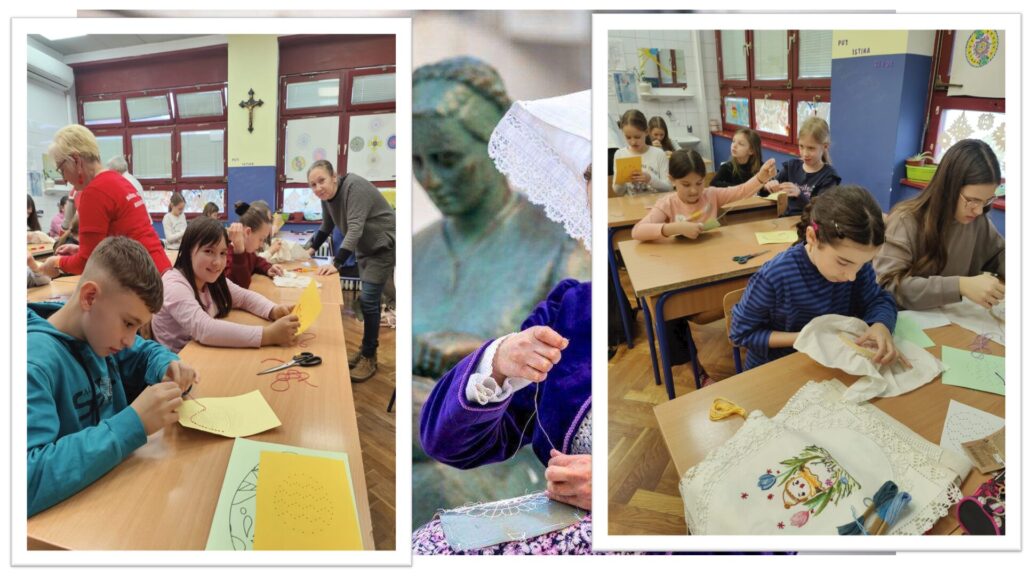 30. ožujka 2026., u Osnovnoj školi Bedekovčina održana je prva radionica u sklopu 5. projektne aktivnosti “Zvjezdano nebo iznad nas od Zagorskih brega do plavoga mora – tradicija ručnog rada u stvaralaštvu naših učenika” unutar projekta “Težimo izvrsnosti 10”. Ova aktivnost lijepo se povezuje s našim Erasmus+ projektom “Water for All – Social and Environmental Issues Along the Water’s Path”, jer “nit i val” simbolizira put od zagorskih bregova (zemlja i obiteljska tradicija) do jadranske obale (more i održivost), ističući kako ručni radovi prirodnih materijala doprinose ekološkoj svijesti . Sudjelovalo je 38 učenika od 1. do 5. razreda, uz voditeljicu Maricu Celjak. i gošće iz Udruge Našenina – vezilje Bedekovčina, gđu Đurđu Mohač,Dragicu Brezak , Ivanu Čorko te pomoć vjeroučiteljice Melite Car-Čorkoi socijalne pedagoginje Ane Horvat.