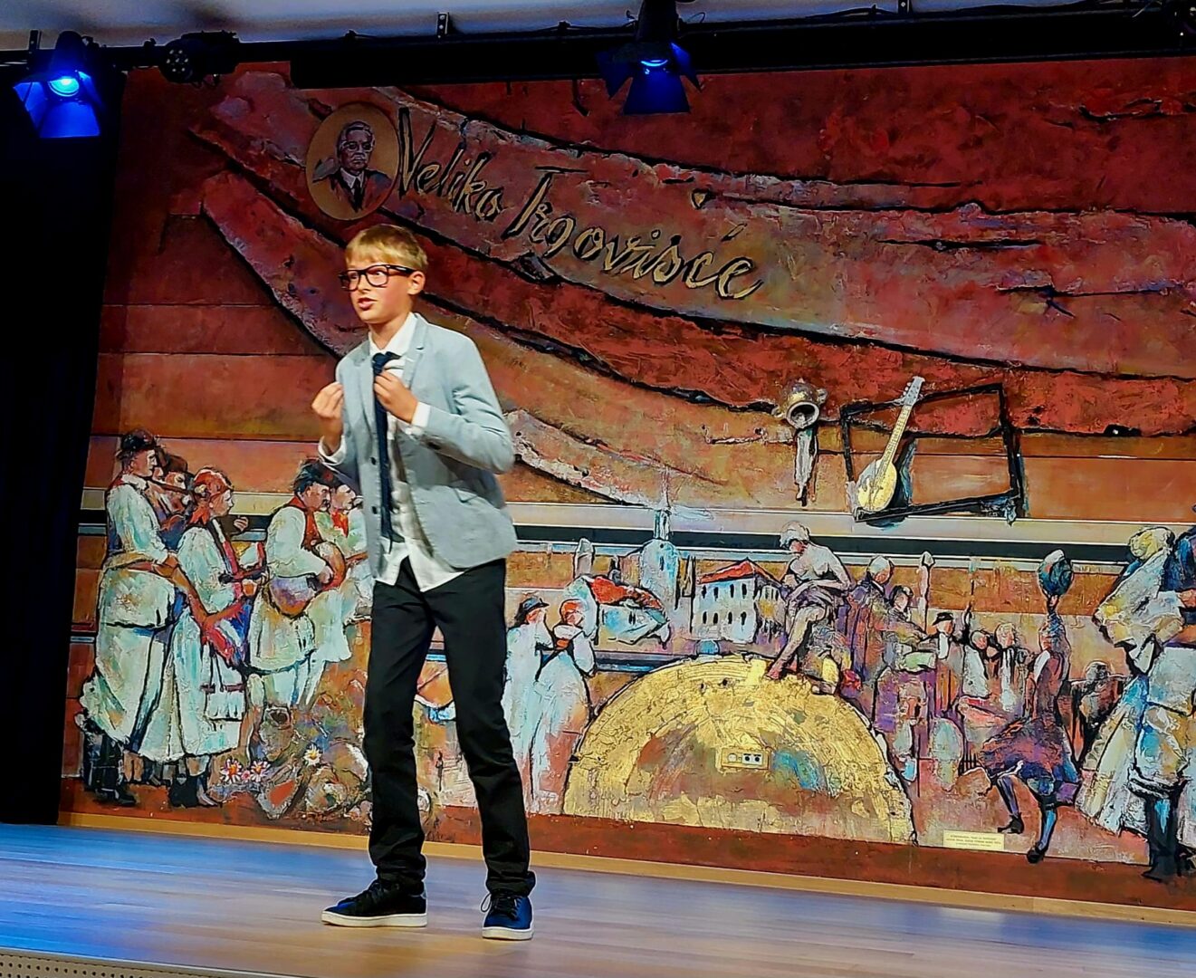 Na prekrasno uređenoj pozornici bila je to dojmljiva slika najuspješnijih radova naših kreativnih učenika i mentora koji su se predstavili u različitim kategorijama. Našu su školu predstavljali u kategoriji pojedinačnog dramsko-scenskog izraza učenik 7. b razreda Martin Pozaić izvevši dojmljiv monolog Novi jadi Adriana Molea prema istoimenom djelu Sue Townsend i njegova mentorica, učiteljica Hrvatskoga jezika Vesna Košutić koja je podijelila svoja iskustva s državne smotre rekavši koliko je Državni LiDraNo velika satisfakcija za uloženi trud i rad i učenicima i mentorima, koliko se novih ideja i motivacija na njoj može steći te kako je ona veliki prozor u otvoreni svijet mogućnosti kreativnog izražavanja, a naš Martin je pokazao i dokazao koliko voli glumu i koliko u njoj uživa te kako će i dalje, naglasio je, sudjelovati i na sljedećim LiDraNima.
