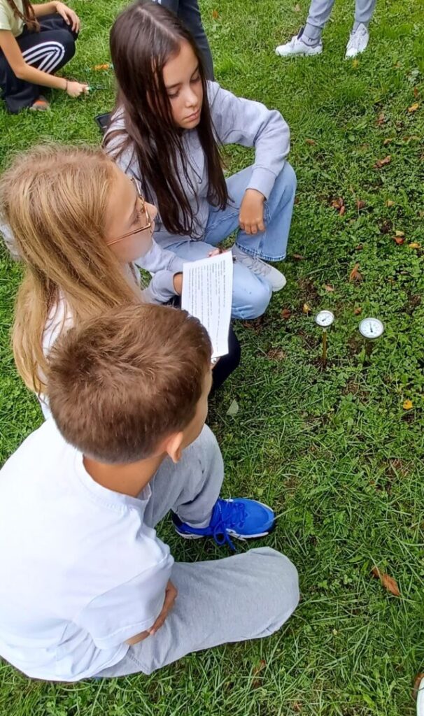 Ovog tjedna su učenici šestih razreda s učiteljicom Danijelom Paradi sudjelovali u izvanučioničkoj nastavi iz Prirode u okolici škole. Tema terenske nastave bila je promjena godišnjih doba. Ispitali su uvjete na proučavanom travnjaku (temperaturu, tlak i vlažnost zraka, temperaturu, pH i važnost tla), te uspoređivali vremenske uvjete ljeta i jeseni. Proučavali su i žućenje listova na primjeru lipe, te složili paletu boja sa listovima koje su odabrali.