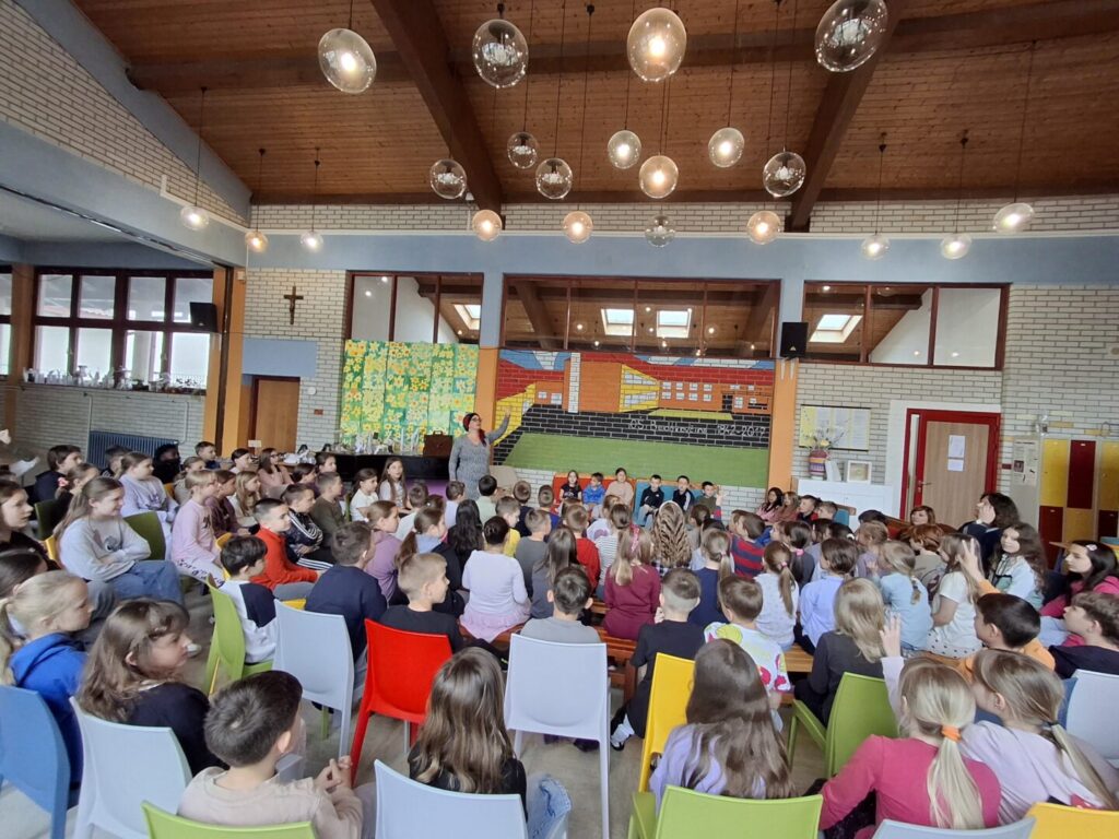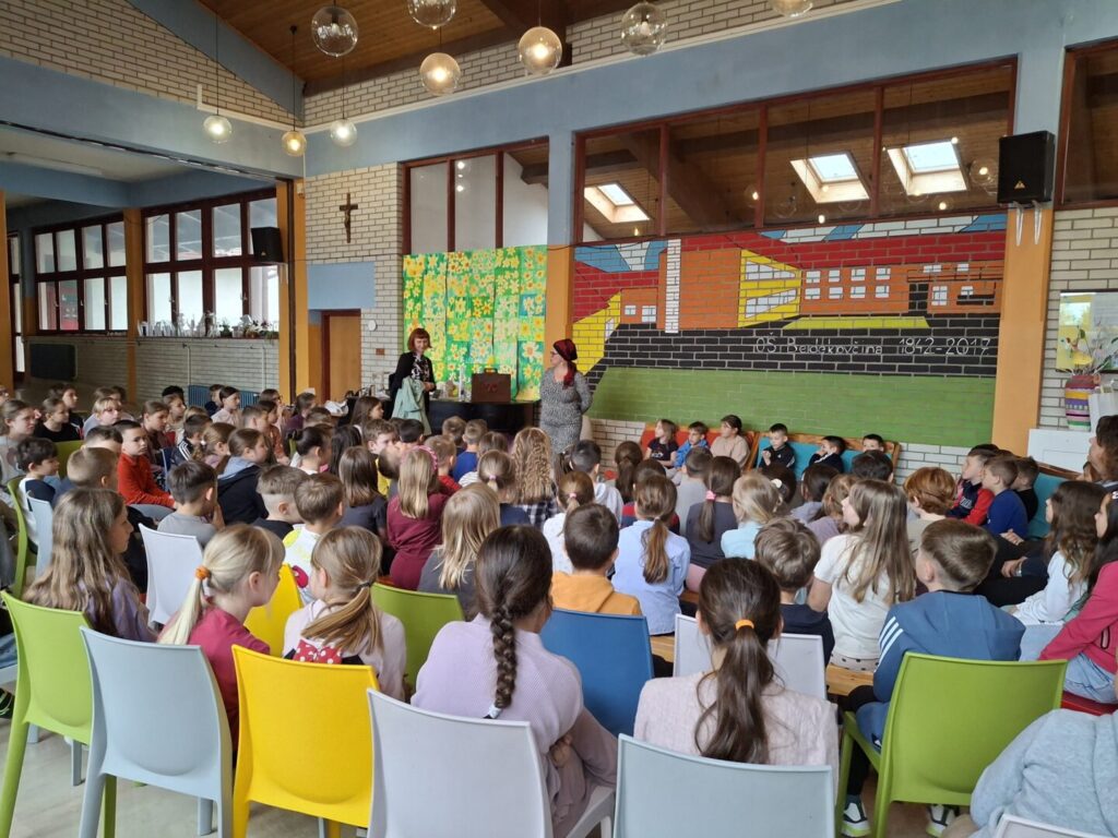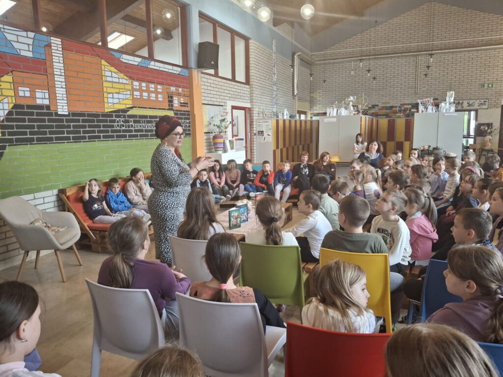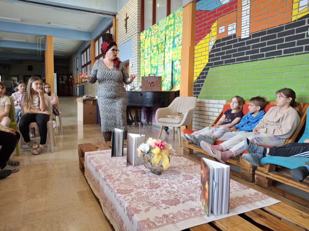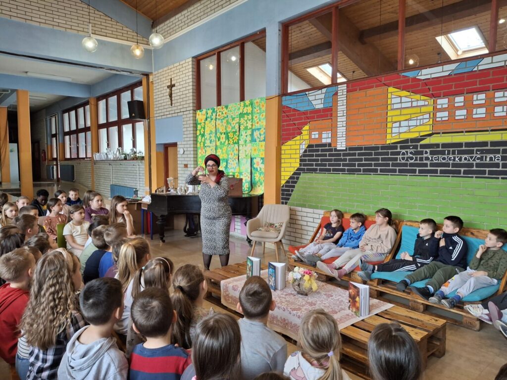 U utorak, 14.4.2026., u matičnoj školi održan je za učenike razredne nastave susret s autoricom Srebrenkom Peregrin. Dugi niz godina bavi se pripovijedanjem, pisanjem i prevođenjem te poučavanjem pripovijedanja. U suautorstvu je zapisala i izdala nekoliko naslova usmenih pripovijesti iz svijeta i Hrvatske: Bajkari, Bajkarice i Bajkarenje.